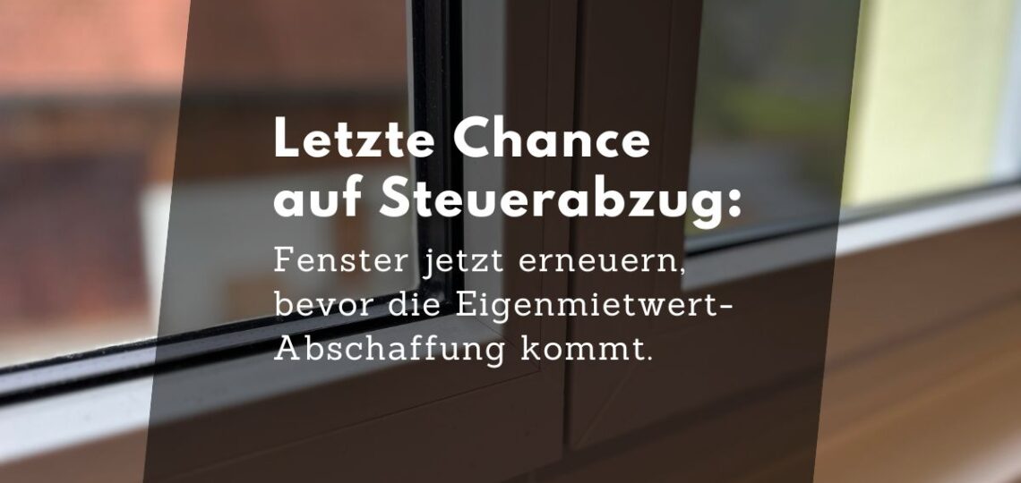 Letzte Chance auf Steuerabzug: Der Eigenmietwert wird abgeschafft! In der Schweiz wurde die Abschaffung des Eigenmietwerts beschlossen. Bis zur voraussichtlichen Umsetzung ab 2028/2029 können Hauseigentümer Kosten für Fensterersatz und Renovationen noch steuerlich geltend machen. Handeln Sie jetzt, um sich diese steuerlichen Vorteile für Wohneigentum zu sichern, bevor die Abzugsmöglichkeiten entfallen. Kontakt Fensterrenovation https://fensterprojekt.ch/wp-content/uploads/2024/09/FensterProjekt_Fenstereinbau_EFH.mp4 FAQ Haben Sie Fragen zum Steuerabzug oder zu unseren Leistungen? Schauen Sie in unsere FAQ, dort beantworten wir die häufigsten Fragen rund um Fensterwechsel und die steuerliche Absetzbarkeit von Renovationen. Kontakt Was bedeutet „letzte Chance auf Steuerabzug“? Nutzen Sie die letzte Chance auf Steuerabzug für Fensterarbeiten, solange der Eigenmietwert in der Schweiz noch besteht – die Abschaffung ist ab 1. Januar 2029 geplant, danach gelten neue steuerliche…